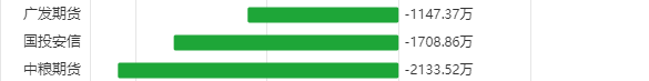 一周内中粮期货、国投安信、广发期货在豆二上亏损居前,三机构分别亏损2133.52万元,1708.86万元,1147.37万元。